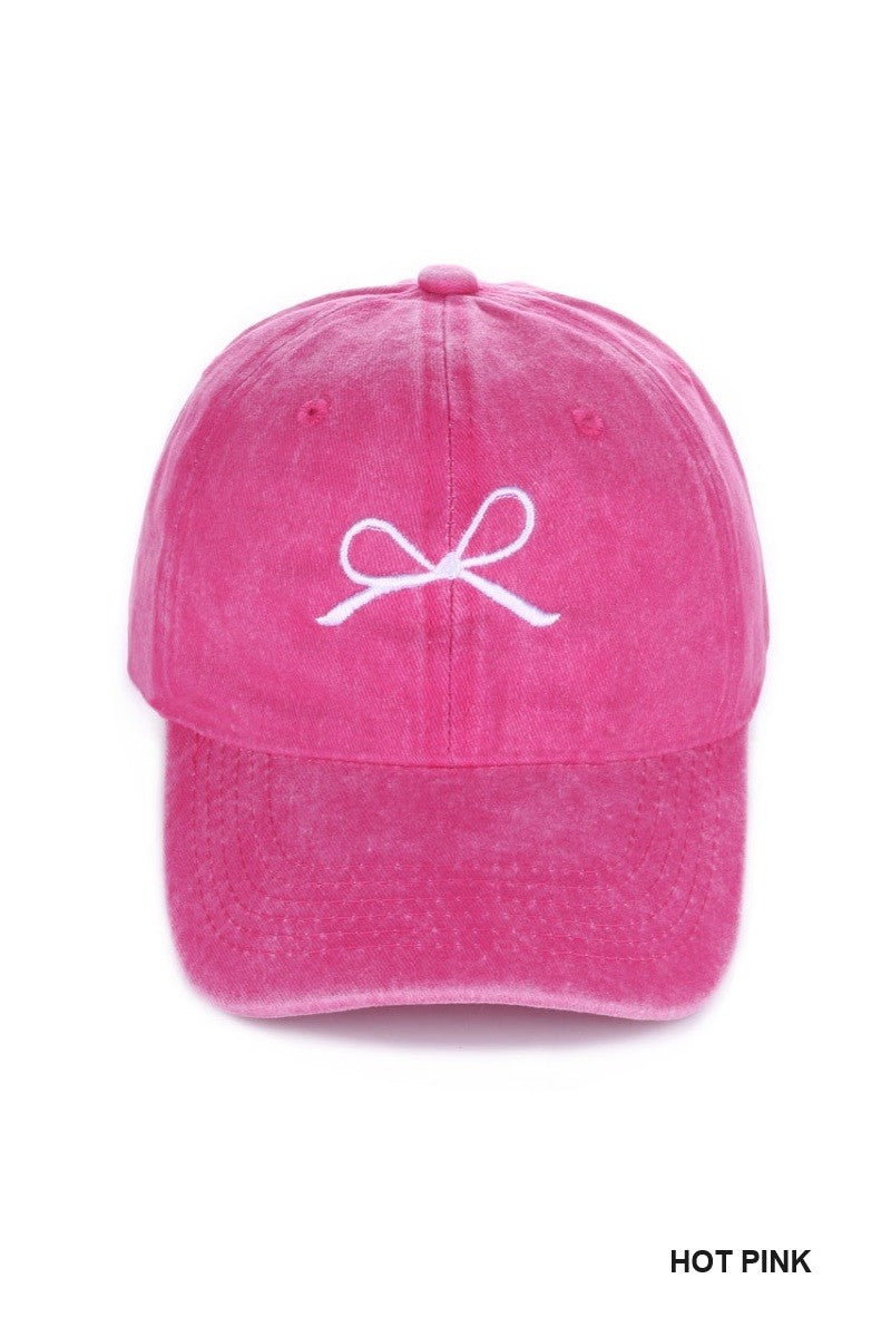 Embroidered Bow Washed Cotton Cap